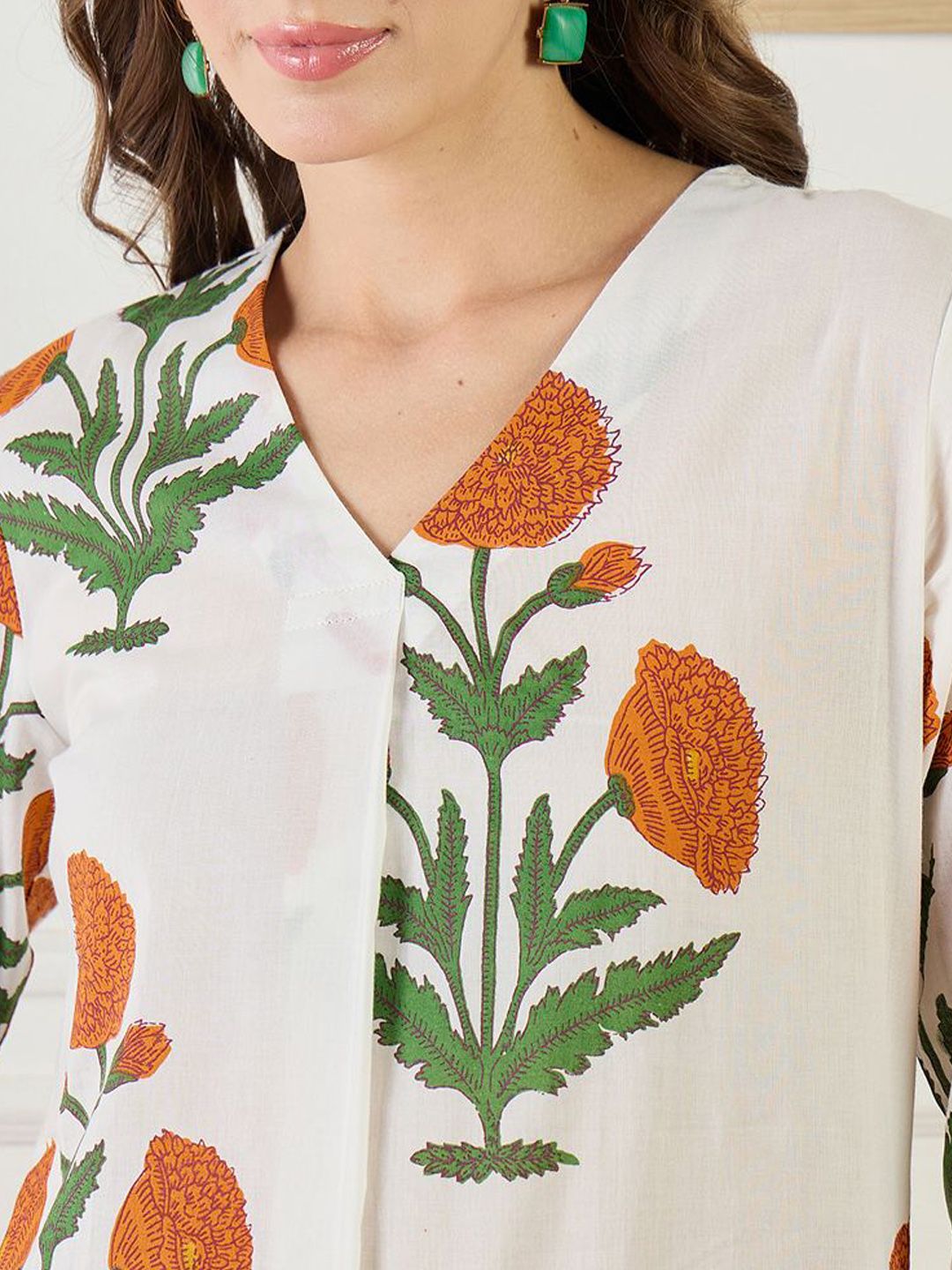 Dhiyona IE Printed Cotton V Neck Top With Trousers Co-Ords