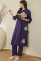Purple solid trousers, has an elasticated waistband with slip-on closure has 2 pockets