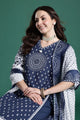 Blue printed Kurta with Trousers with dupatta