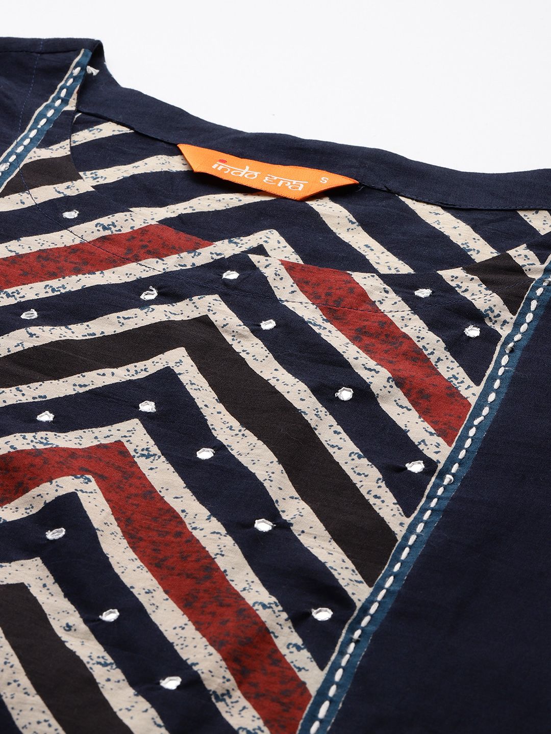 Dhiyona IE Printed Panelled Sequinned Pure Cotton Kurta With Trousers & Dupatta