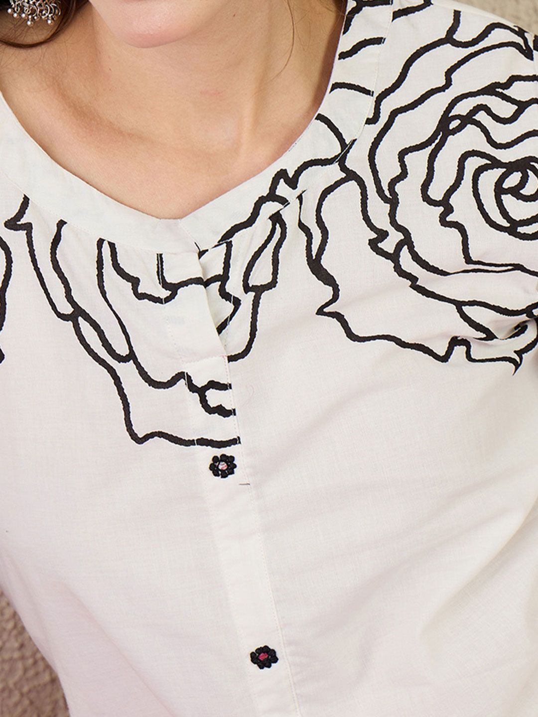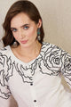 White printed tunic has a v neck and three quarters sleeves slip-on closure