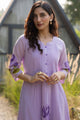 Lavender-Colored printed kurta, has round neck, three-quarter sleeves, side slits & slip-on closure