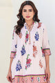 Peach printed tunic, has a mandarin collar neck and three-quarter sleeves