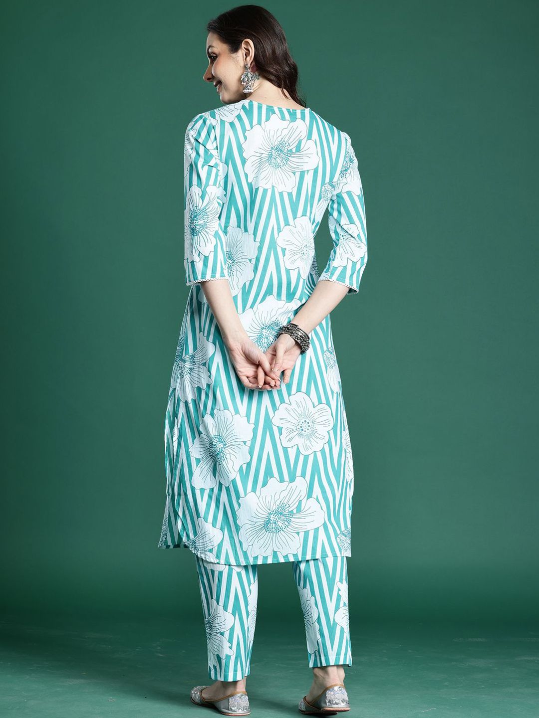 Dhiyona IE Printed Pure Cotton Top With Trousers Co-Ords