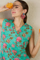 Green and pink printed tunic, has a v-neck and sleeveless, secured with slip-on closure