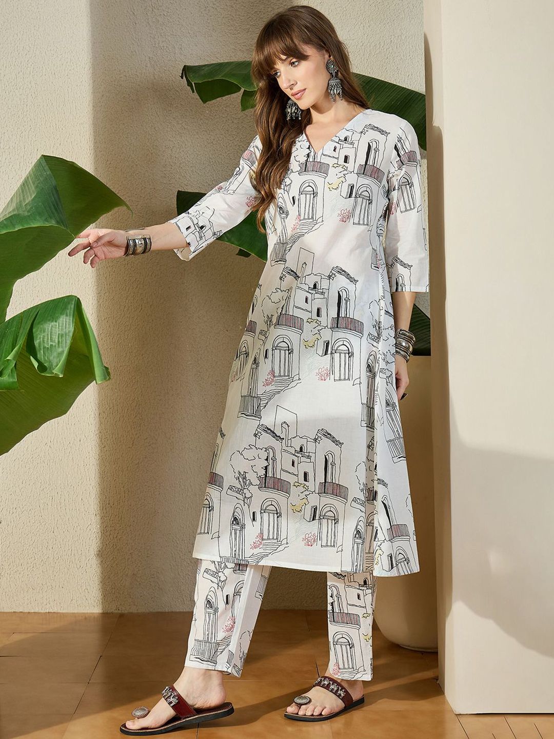 Dhiyona IE Printed Pure Cotton V-Neck Top With Trousers