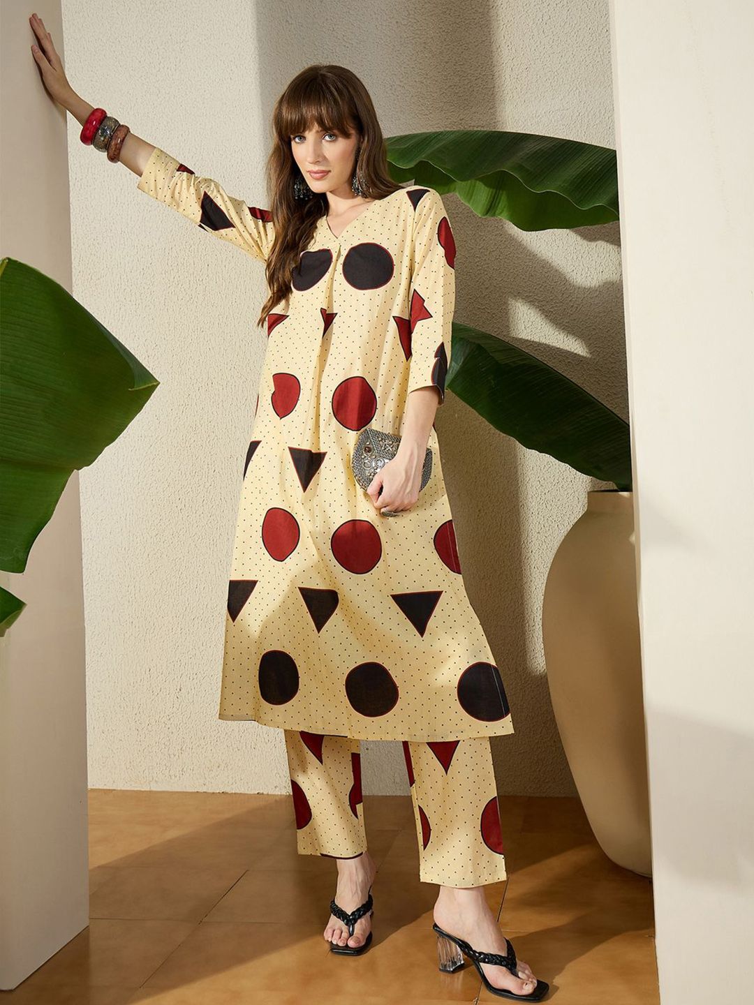 Dhiyona IE Printed Pure Cotton V-Neck Top With Trousers