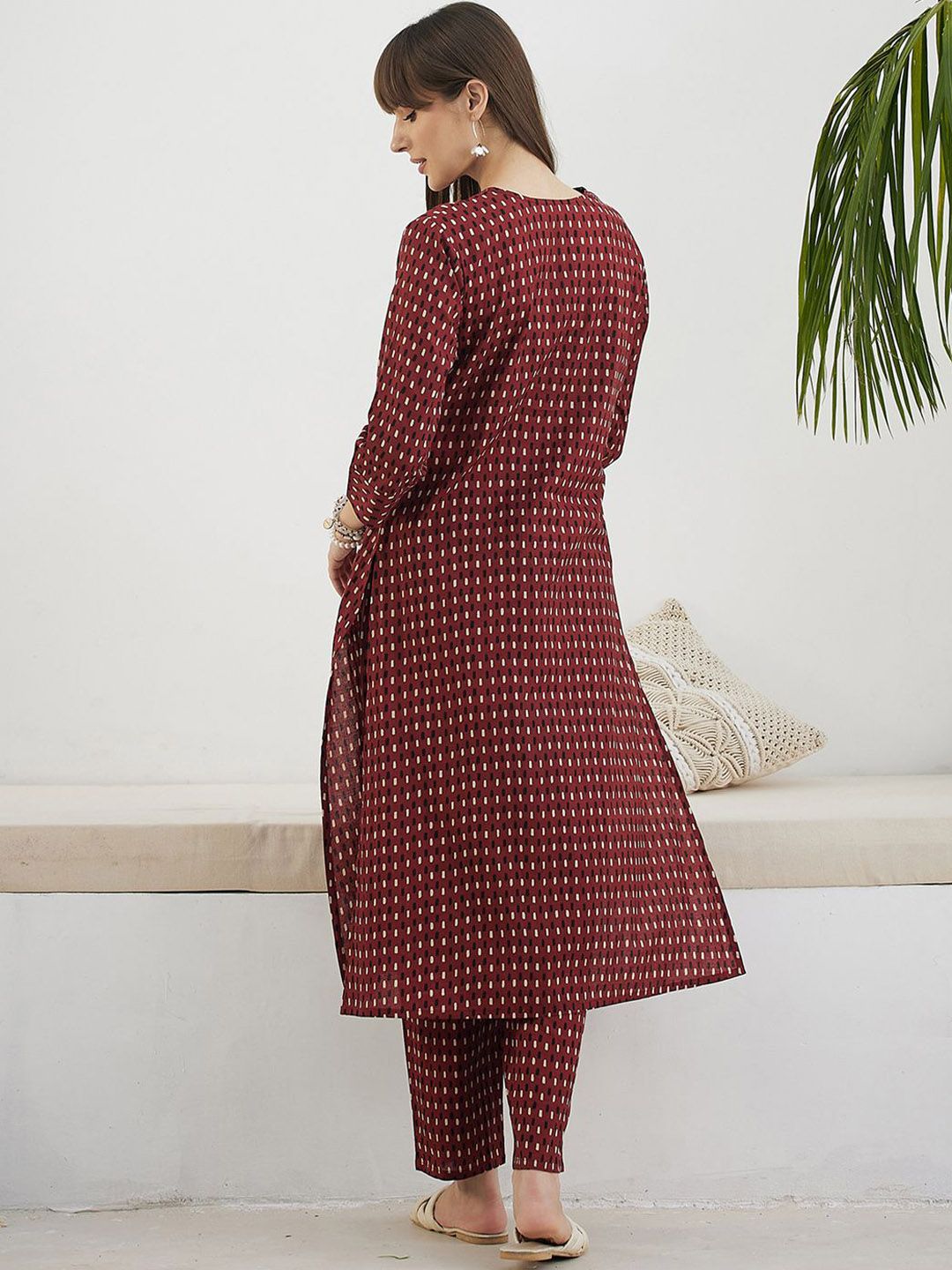 Dhiyona IE Printed Pure Cotton V-Neck Top With Trousers Co-Ords