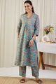 Dhiyona IE Printed Pure Cotton V-Neck Top With Trousers Co-Ords