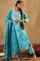 Dhiyona IE Printed Regular Thread Work Pure Cotton Straight Kurta with Trousers & Dupatta