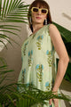 Green, sea green and blue Printed A-Line Kurta, has Round Neck, Sleeveless, and Flared hem