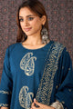 Dhiyona IE Printed Round Neck Thread Work Pure Cotton Straight Kurta With Trousers & Dupatta