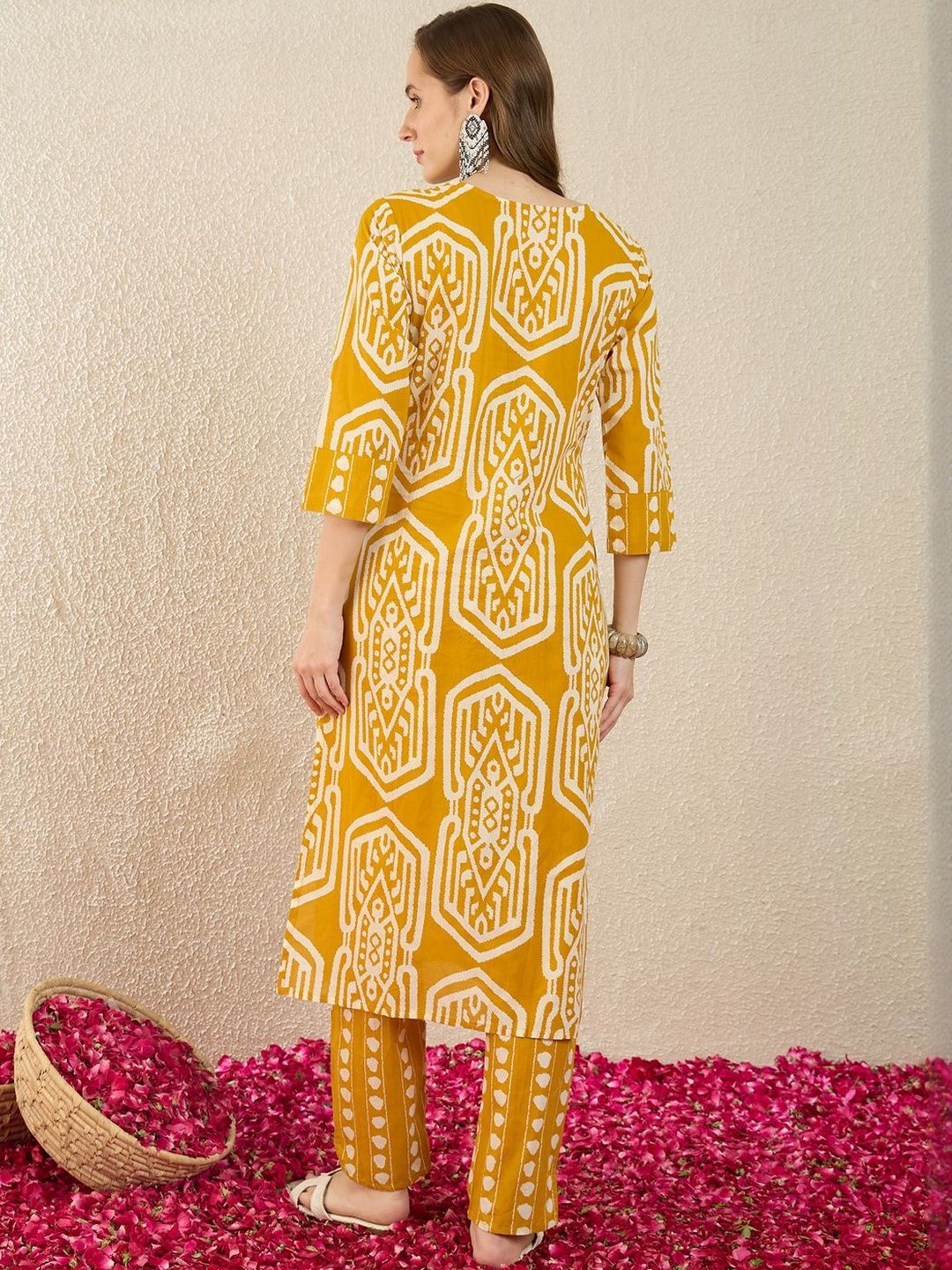Dhiyona IE Printed Round Neck Three-Quarter Sleeves Pure Cotton Tunic And Trousers