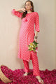 Pink & white printed trousers, has an elasticated waistband with slip-on closure has 2 pockets