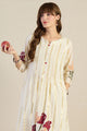 White printed top, has a round neck and three-quarter sleeves