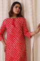 Red and beige printed tunic, has a tie-up neck and three-quarter sleeves