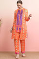 Orange coloured & Purple printed mid-rise trousers, has Partially elasticated waistband and straight hem