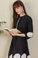 Black & white printed tunic, has a a mandarin collar and three quarters sleeves, secured with slip-on closure