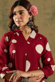 Maroon and white printed tunic, has v-neck, three quarter sleeves