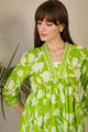 Green and white printed kurta , has a v neck and three quarter regular sleeves
