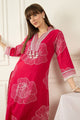Dhiyona IE Printed V-Neck Three-Quarter Sleeves Pure Cotton Tunic And Trousers