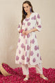 Dhiyona IE Printed V-Neck Three-Quarter Sleeves Pure Cotton Tunic And Trousers