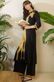 Black & yellow hem printed palazzos, has an elasticated waistband with slip-on closure has 2 pockets