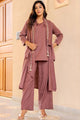 Brown and beige solid kurta with palazzo and jacket
