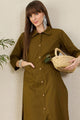 Olive-green solid tunic, has a shirt collar neck and three quarter sleevess