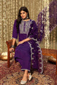Dhiyona IE Purple Floral Yoke Design Thread Work Straight Kurta With Trousers & Dupatta