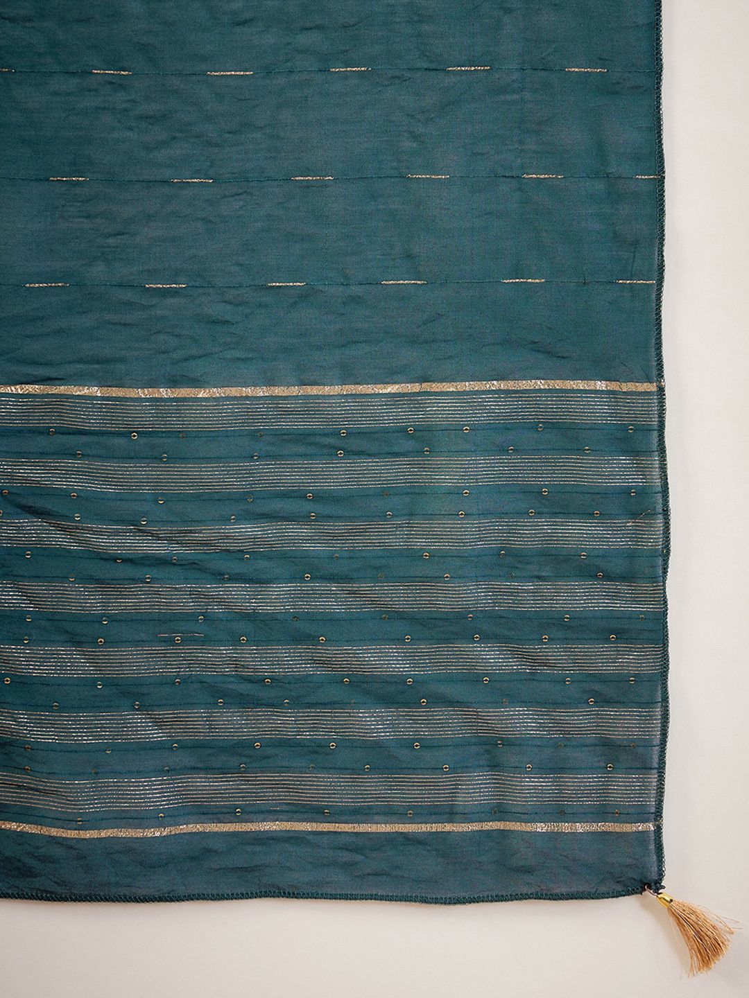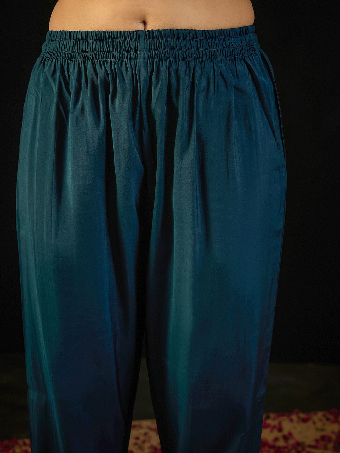 Dhiyona IE Round Neck Embroidered Sequinned Chanderi Silk Kurta with Trouser & Dupatta