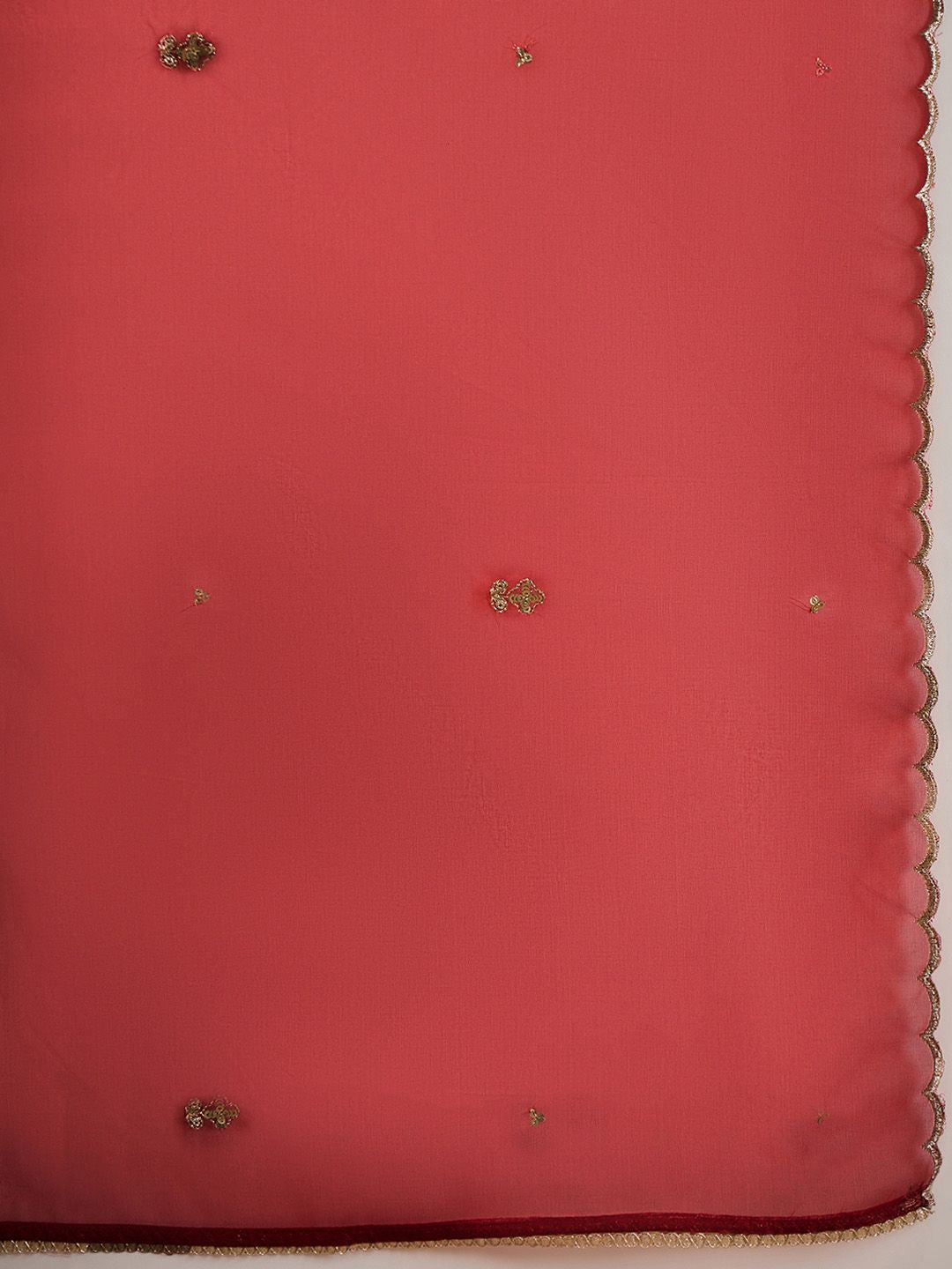 Dhiyona IE Round Neck Ethnic Embroidered Sequinned Kurta with Trouser & Dupatta