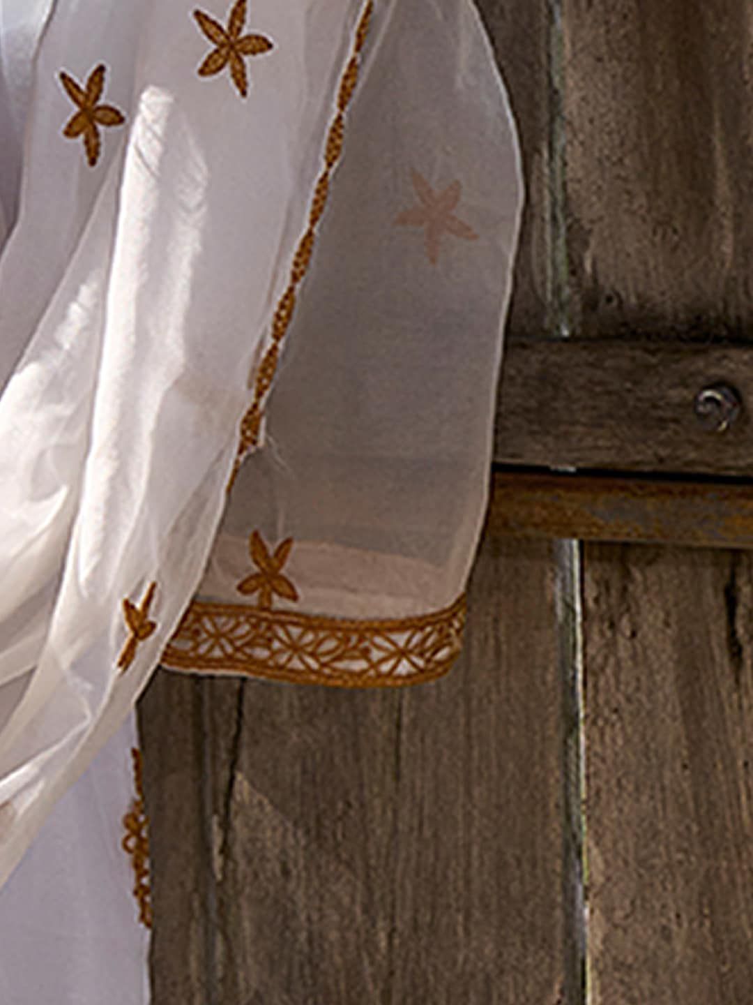 Dhiyona IE Round Neck Floral Embroidered Regular Thread Work Kurta Set