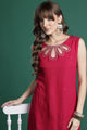 Pink self designed top, has a round neck and sleeveless, secured with slip-on closure