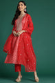 Red striped Kurta with Trousers with dupatta