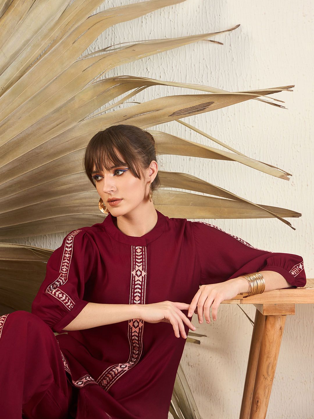 Mandarin Collar neck and Three-Quarter Sleeves Secured with button closure
