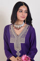 Purple and gold-toned embroidered tunic , has a v-Neck and long sleeves, secured with slip-on closure