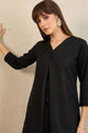 Black solid straight tunic, has v-neck, three quarter sleeves and slip-on closure