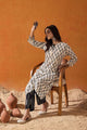 White, grey & black printed Kurta with Trousers