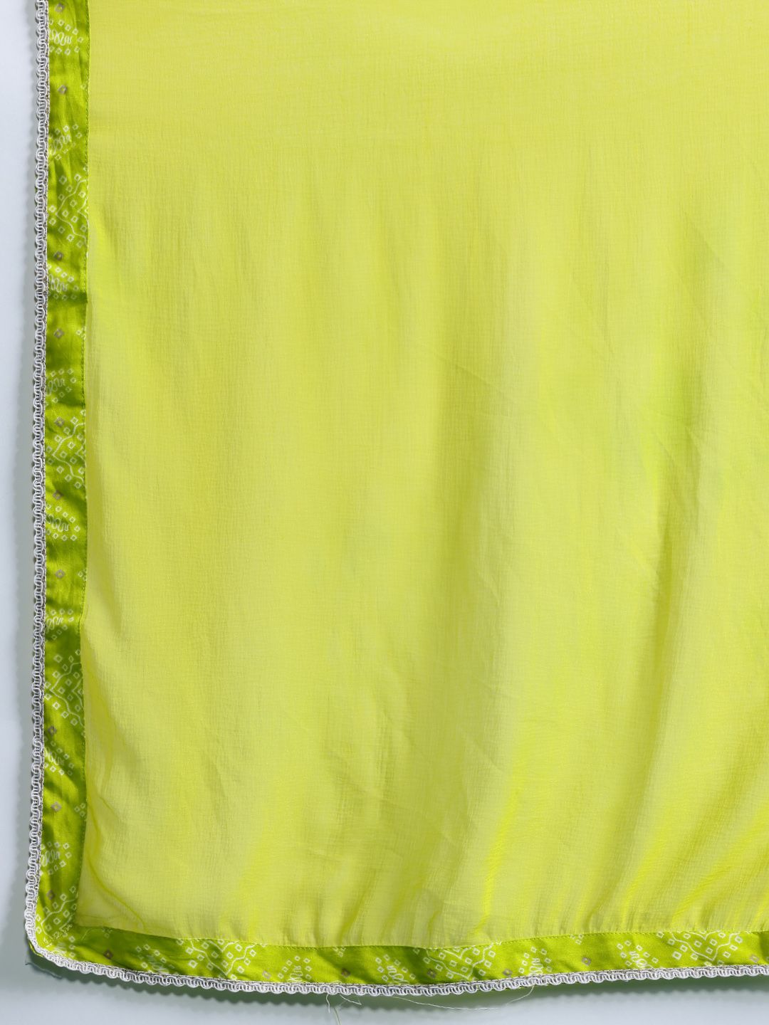 Dhiyona IE Women Bandhani Printed Empire Thread Work Pure Cotton Kurta with Trousers & With Dupatta