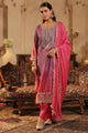 Purple, Pink, White Printed Kurta with Trousers & Dupatta