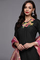 Dhiyona IE Women Black Embroidered Kurta with Palazzos & With Dupatta