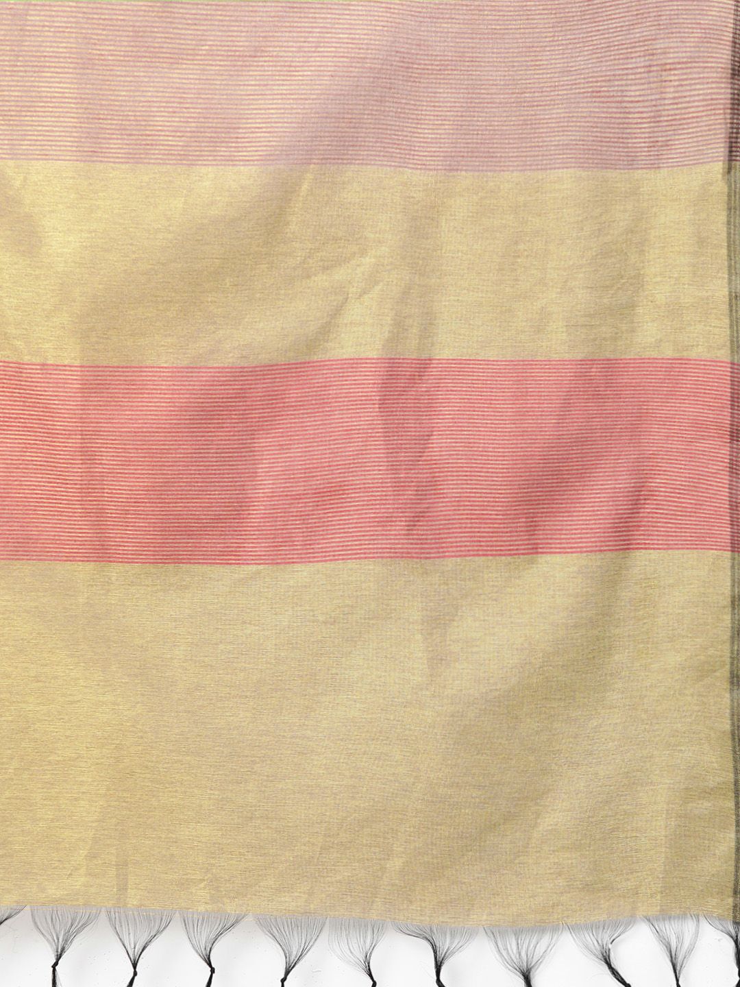 Golden and red self-striped dupatta, has tassels border