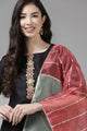 Dhiyona IE Women Black & Pink Floral Embroidered Kurta with Palazzos & With Dupatta