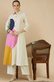 Off white colourblocked Kurta with Trousers