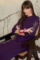 Purple Embroidered top, has a mandarin collar and three-quarter sleeves, secured with button closure