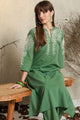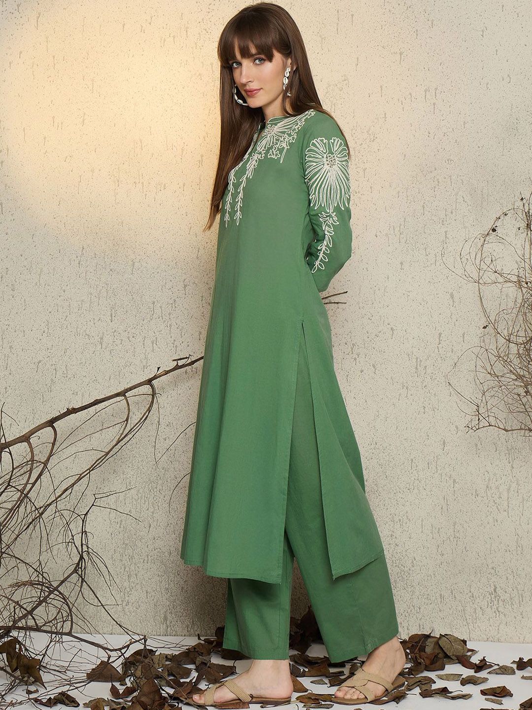 Dhiyona IE Women Embroidered Mandarin Collar Cotton Top and Trousers Co-Ords