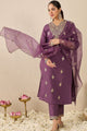 Dhiyona IE Women Embroidered Sequinned Regular Straight Kurta With Trousers & Dupatta
