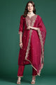 Burgundy and Gold-toned Kurta with Trousers and Dupatta