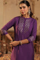 Purple embroidered kurta has a round collar neck and , secured with slip on closure